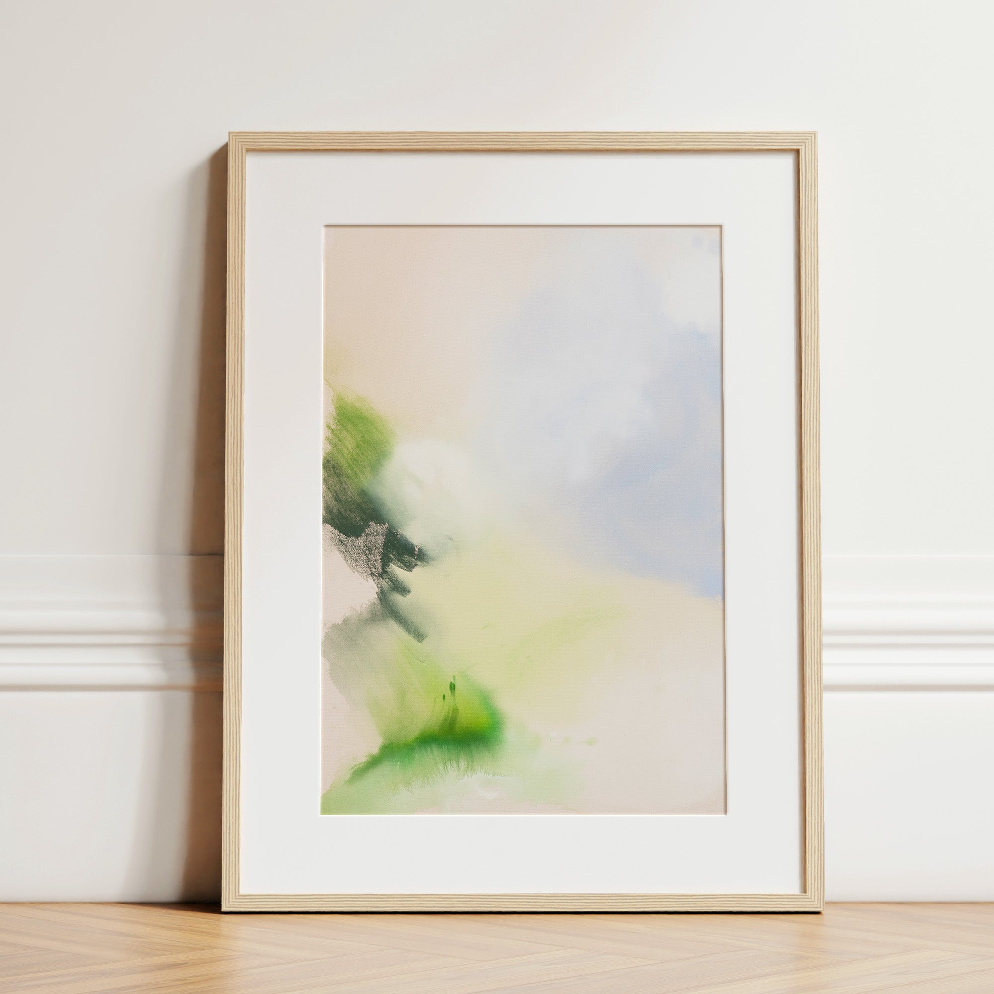 A meditative art experience for deep healing and renewal. Bathed in calming blue, grounded by green, and softened with white, it invites release, restoration, and trust. Pair with "Sleep Safely My Love" for an expansive, restorative space of inner peace and renewal. Perfect for meditation spaces, therapy rooms, and sacred spaces.